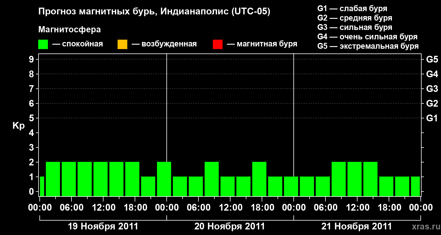Прогноз магнитных бурь в Индианаполисе — 19 ноября 2011 года