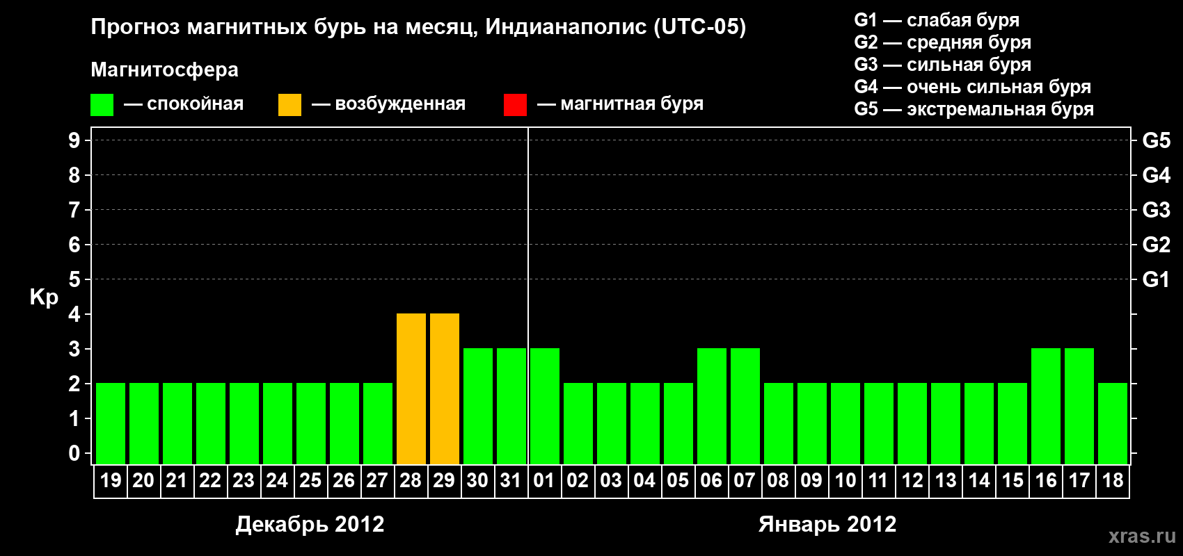 Прогноз магнитных бурь в Индианаполисе — 19 декабря 2011 года