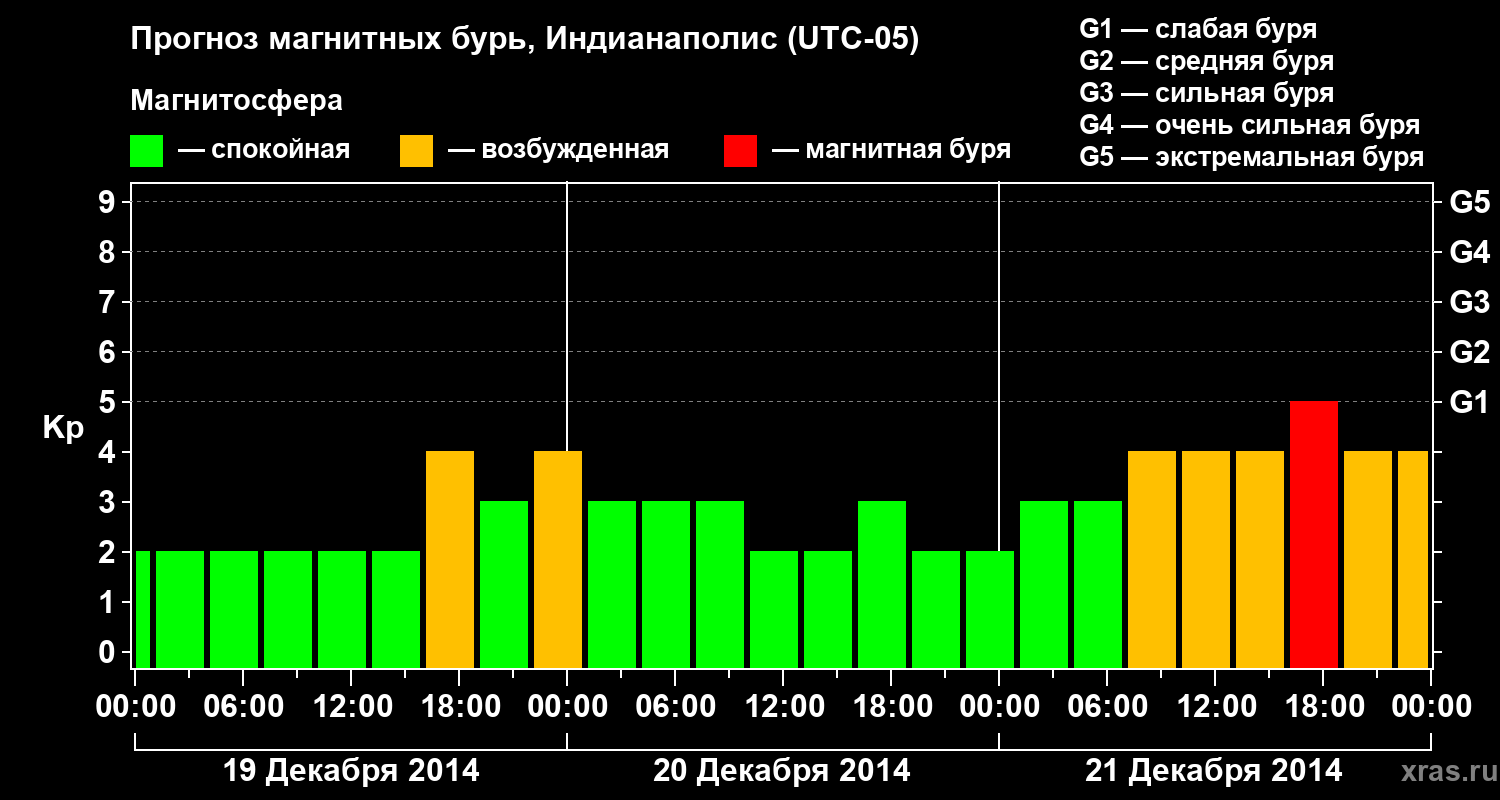 Прогноз магнитных бурь в Индианаполисе на 19 декабря 2014 года