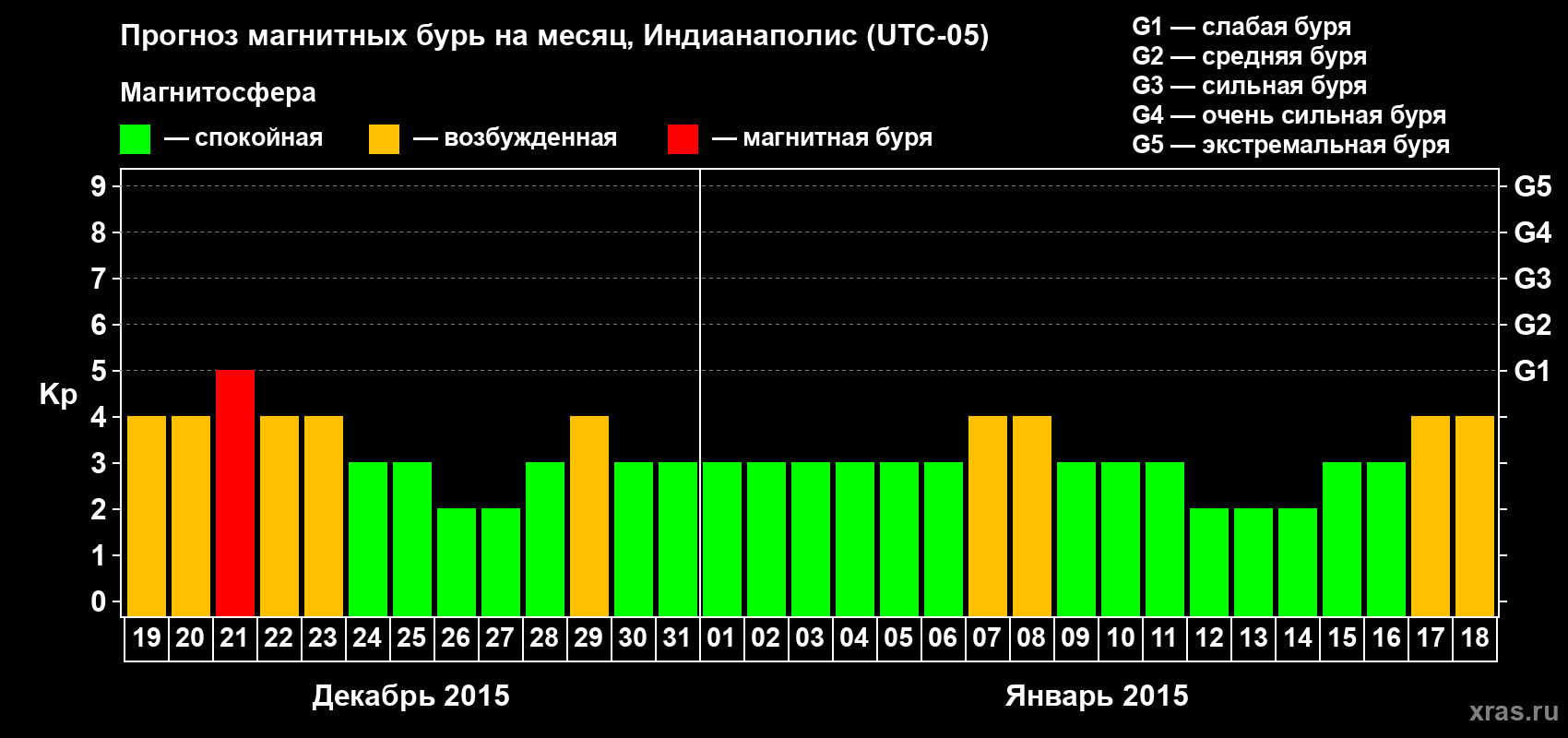 Прогноз магнитных бурь в Индианаполисе — 19 декабря 2014 года