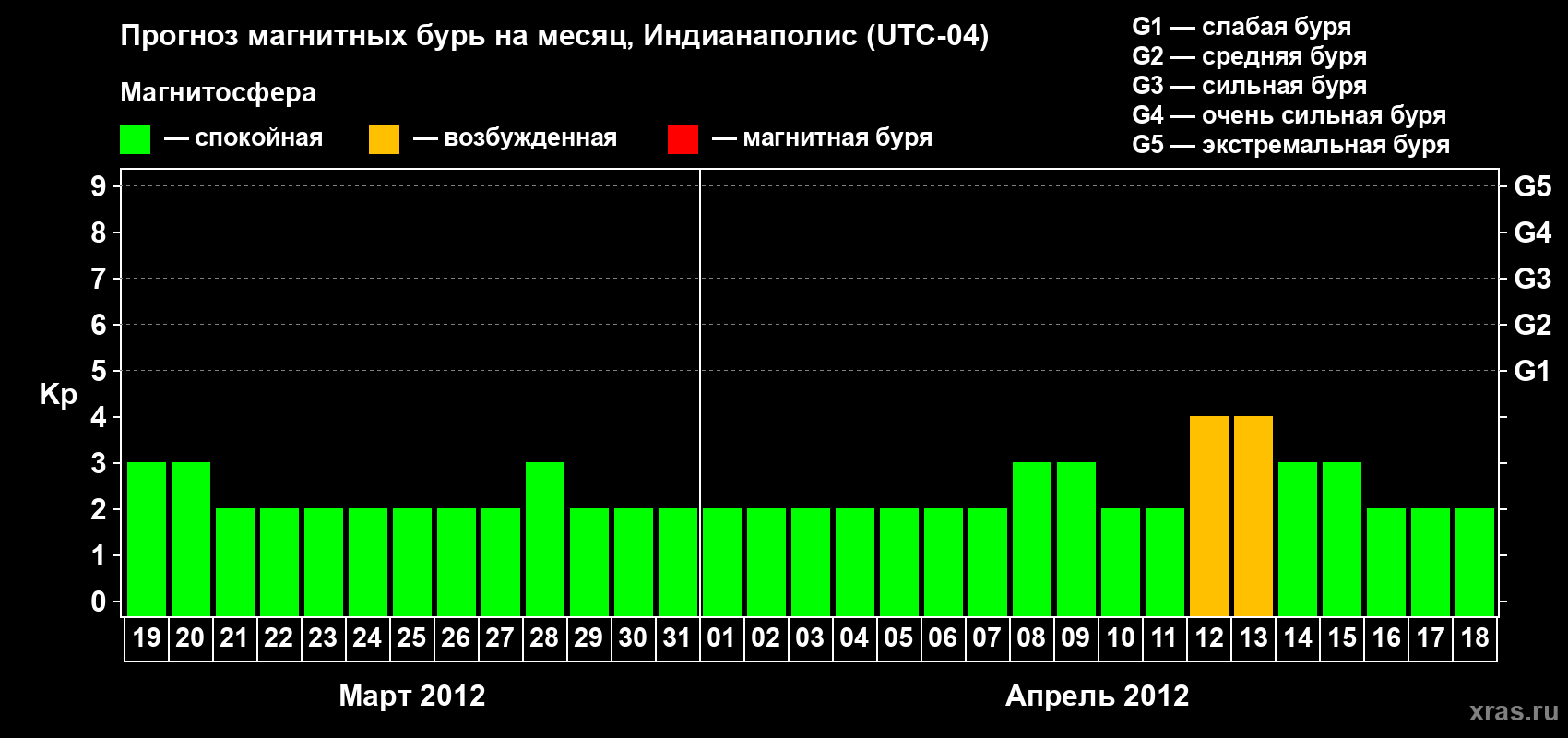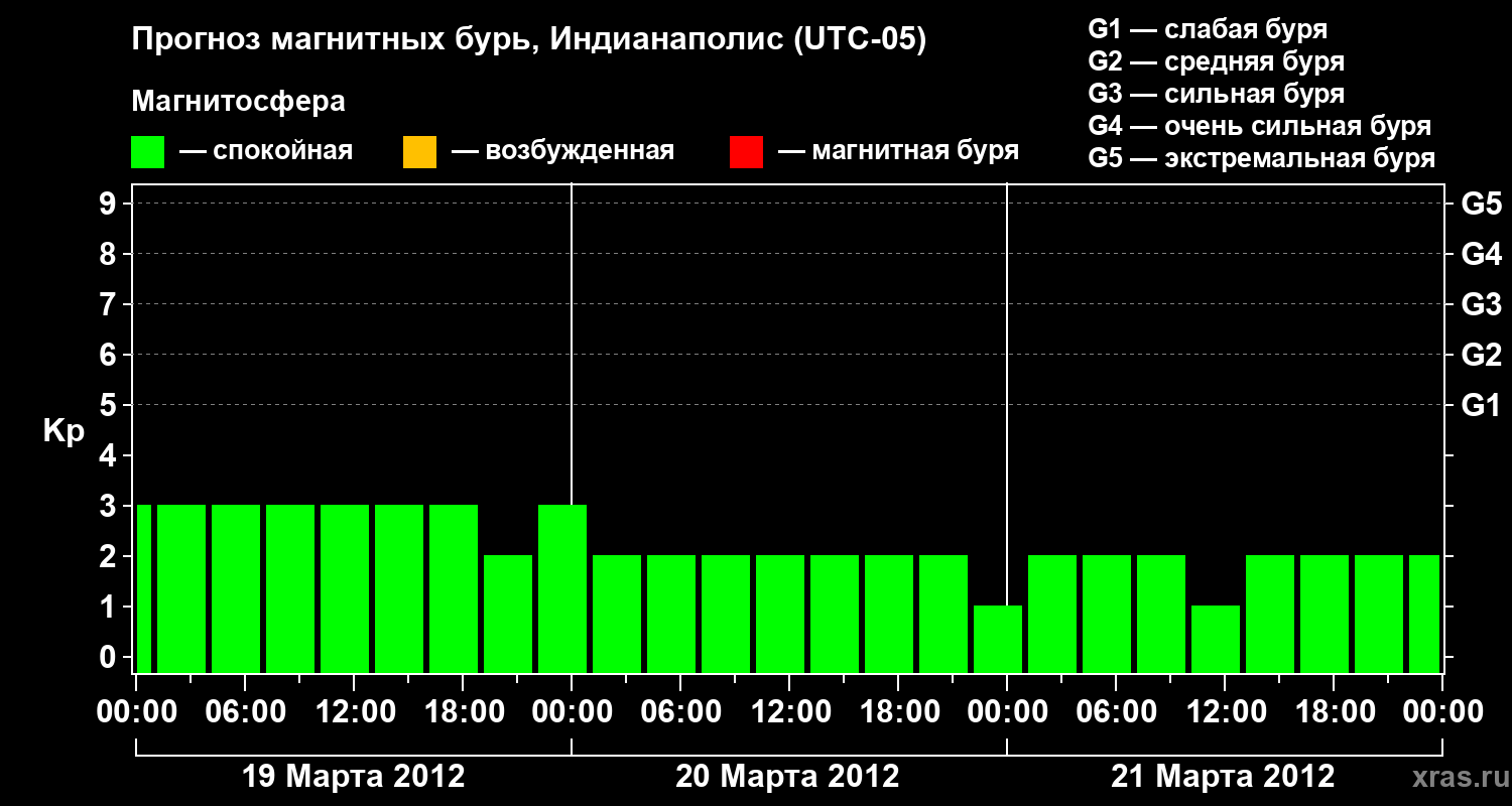 Прогноз магнитных бурь в Индианаполисе — 19 марта 2012 года