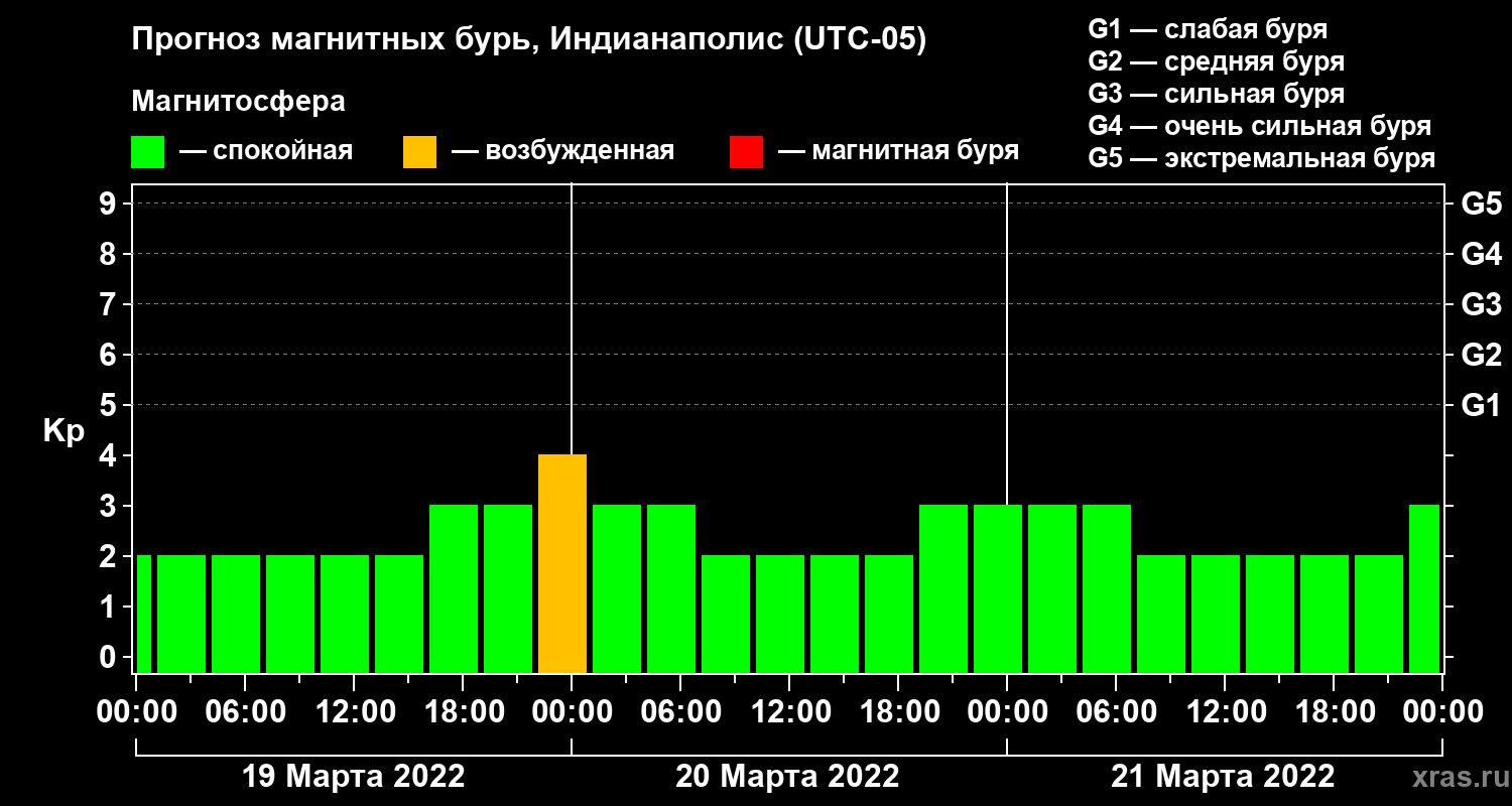 Прогноз магнитных бурь в Индианаполисе — 19 марта 2022 года