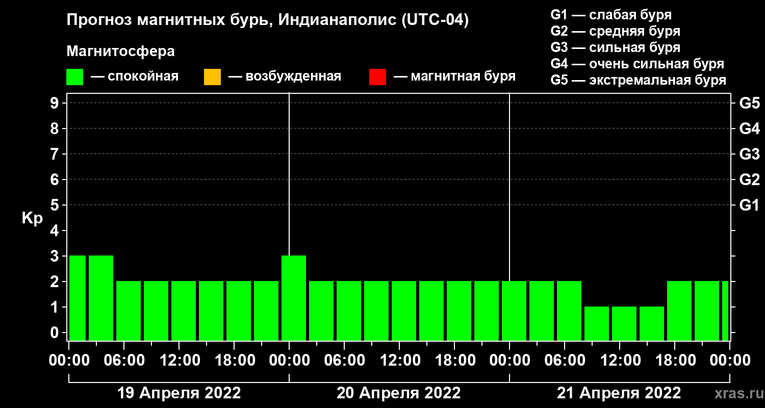 Прогноз магнитных бурь в Индианаполисе — 19 апреля 2022 года