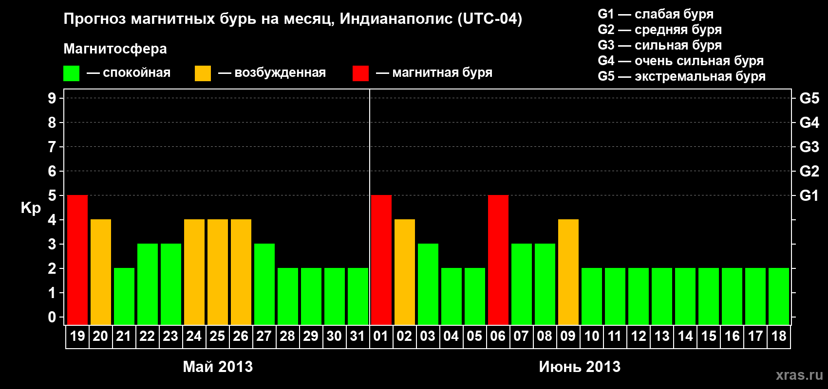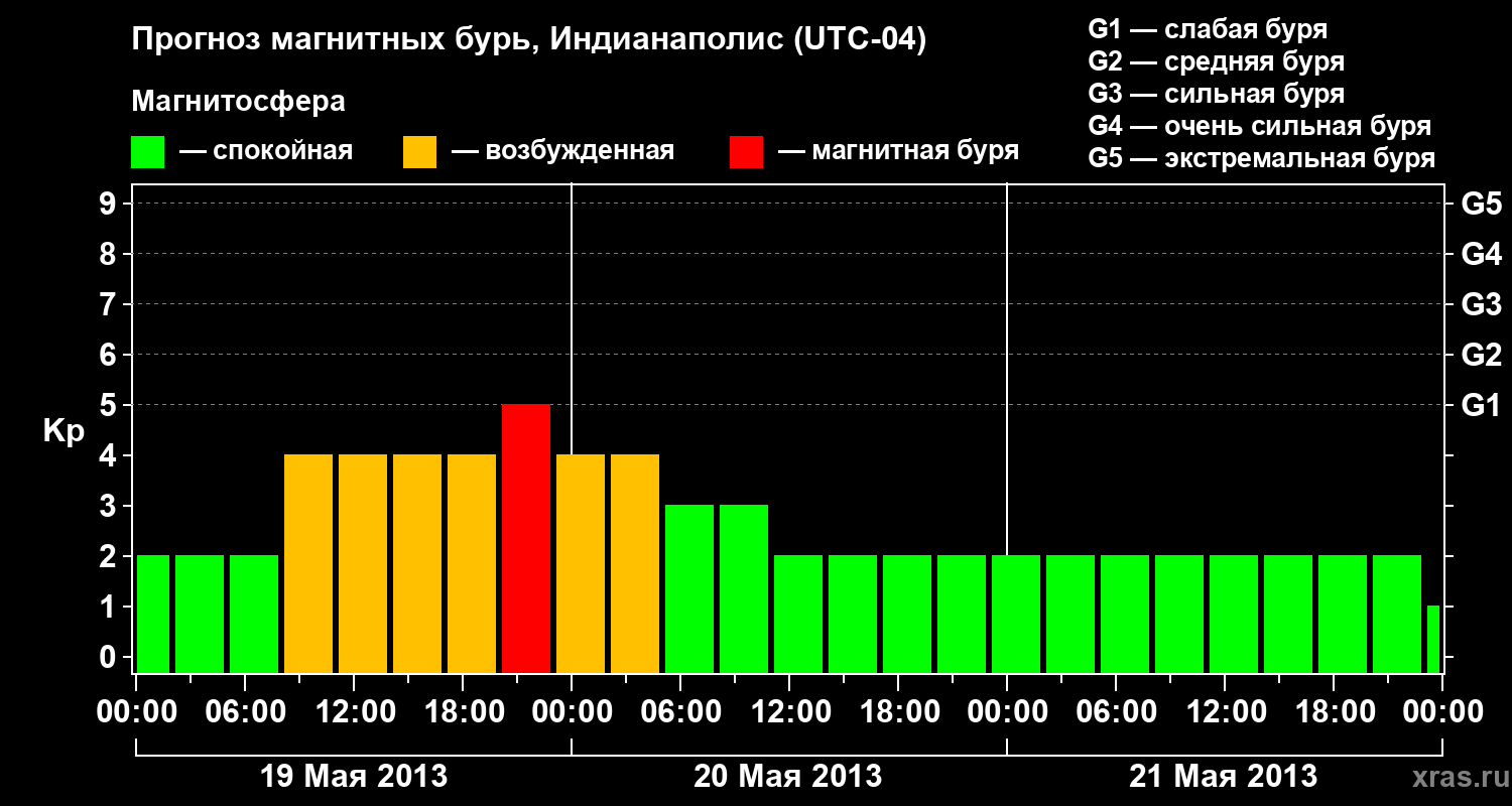 Прогноз магнитных бурь в Индианаполисе — 19 мая 2013 года