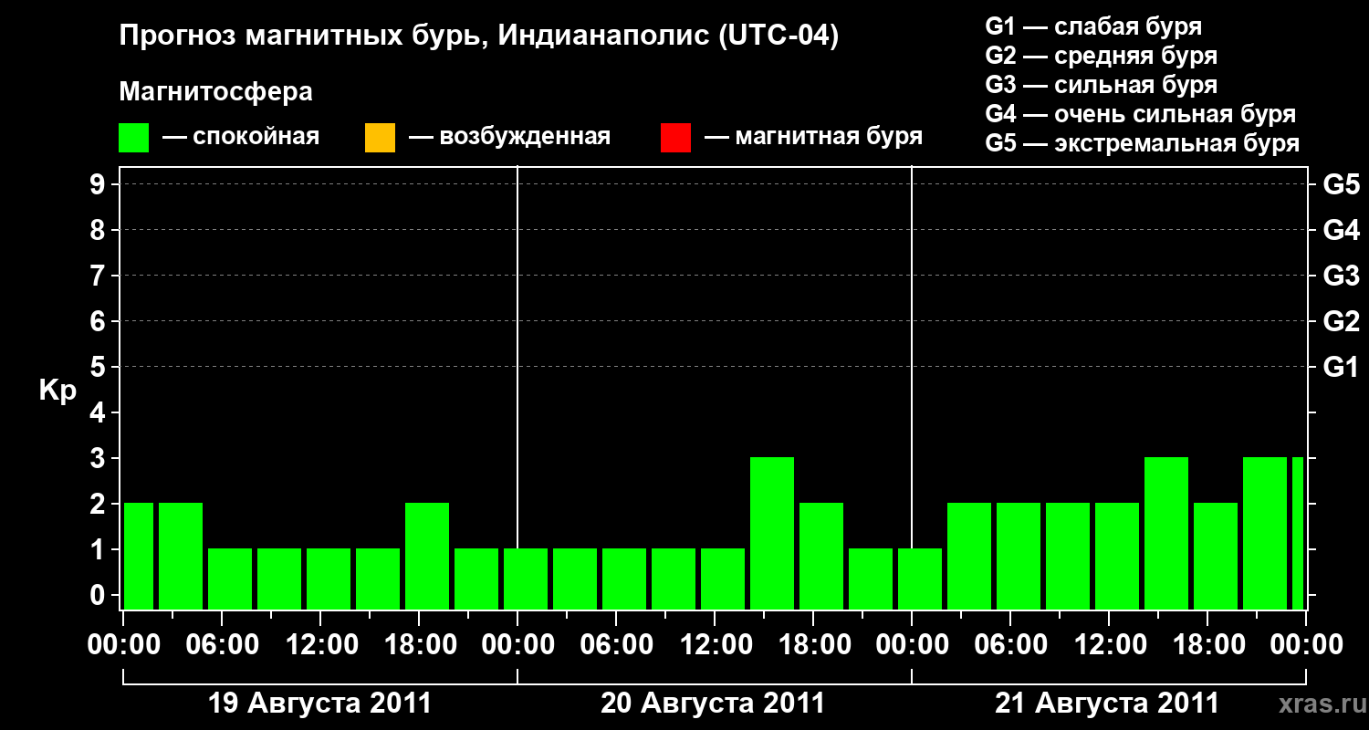 Прогноз магнитных бурь в Индианаполисе на 19 августа 2011 года