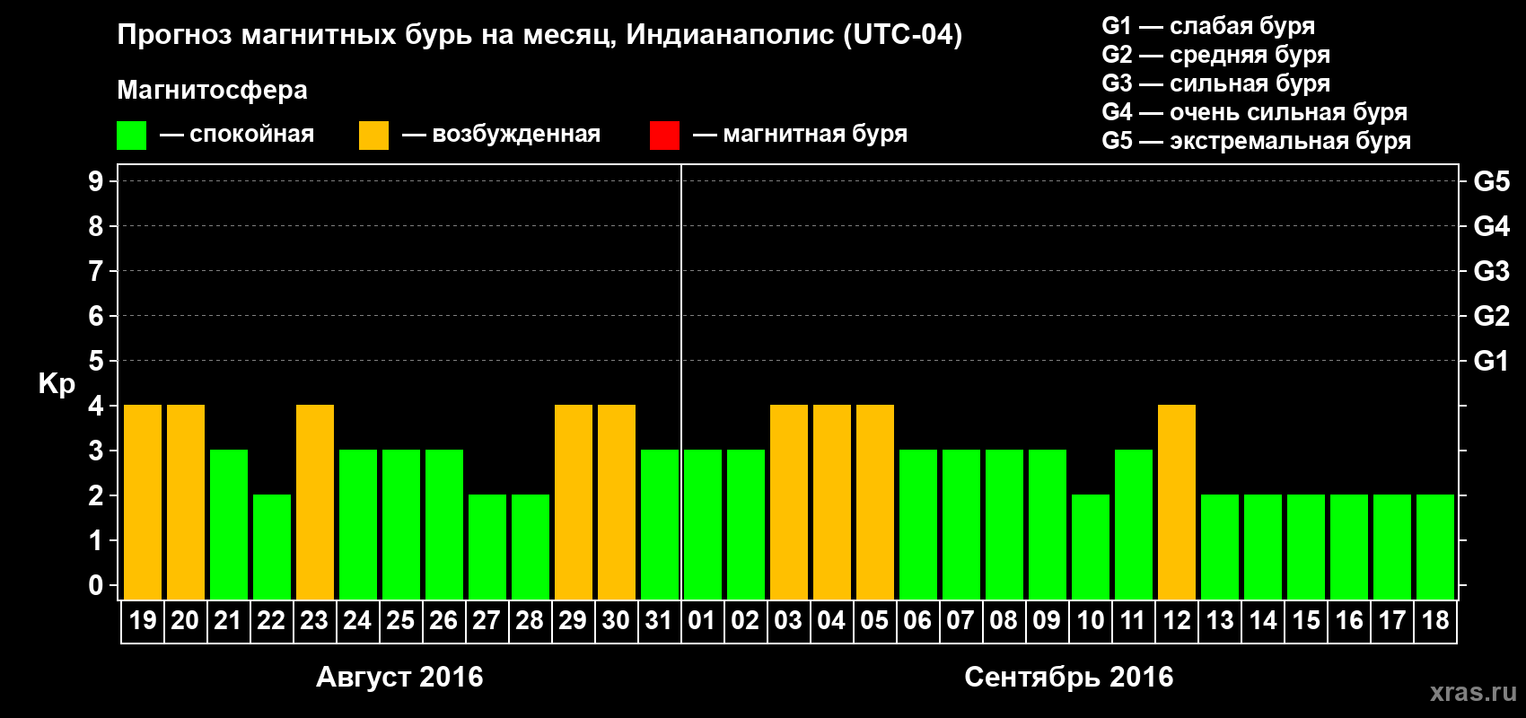 Прогноз магнитных бурь в Индианаполисе на 19 августа 2016 года
