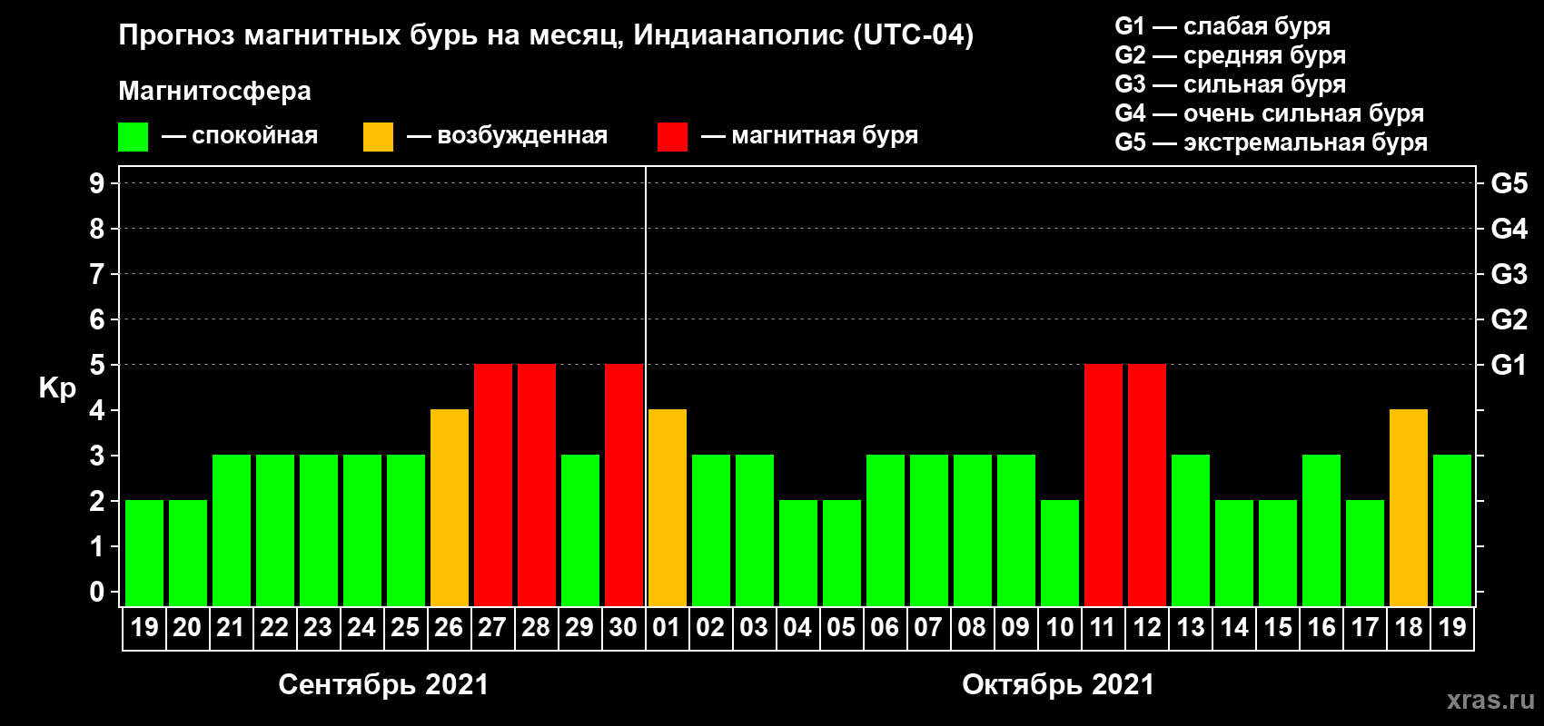 Прогноз магнитных бурь в Индианаполисе — 19 сентября 2021 года