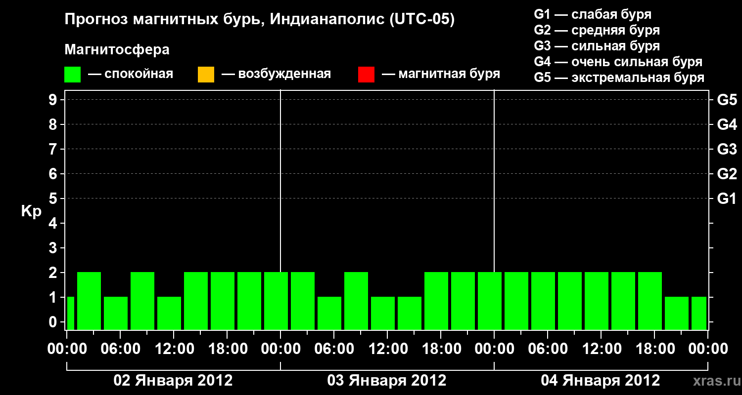 Прогноз магнитных бурь в Индианаполисе — 2 января 2012 года