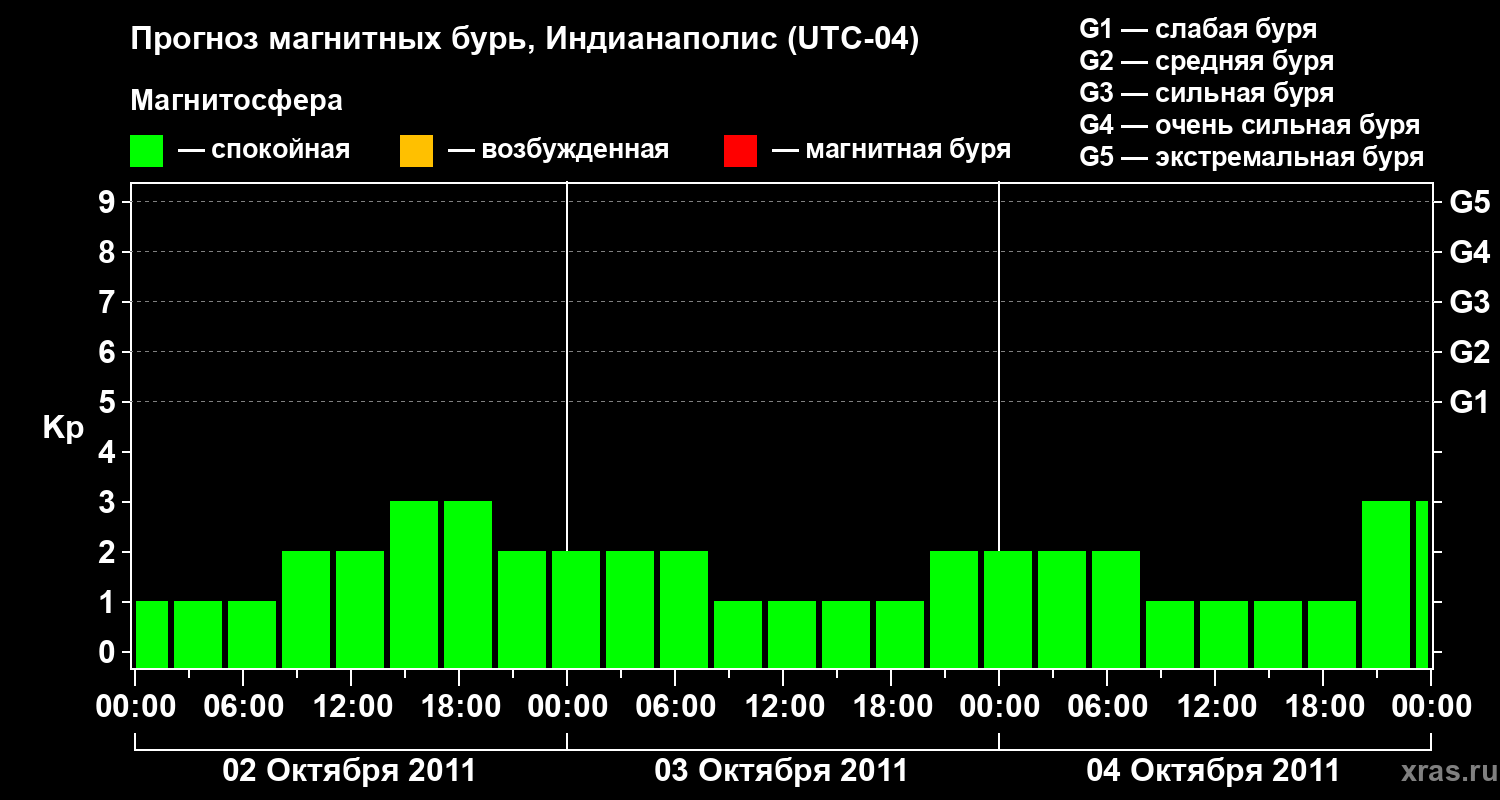 Прогноз магнитных бурь в Индианаполисе — 2 октября 2011 года