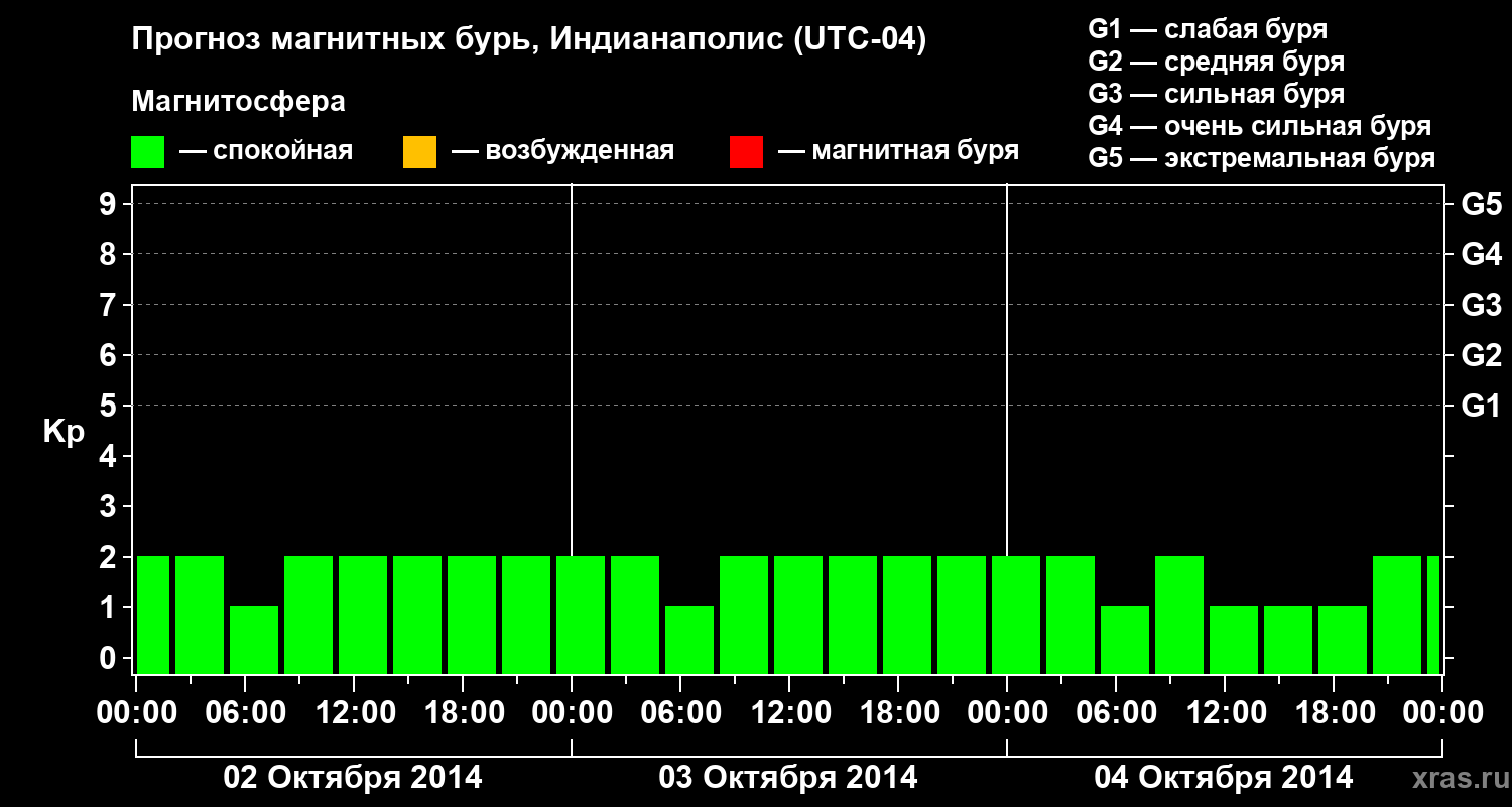 Прогноз магнитных бурь в Индианаполисе на 2 октября 2014 года