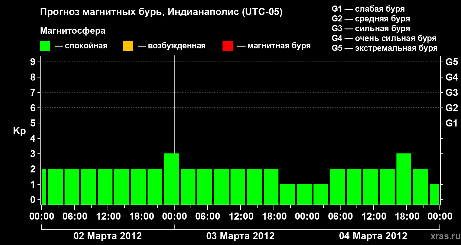 Прогноз магнитных бурь в Индианаполисе на 2 марта 2012 года