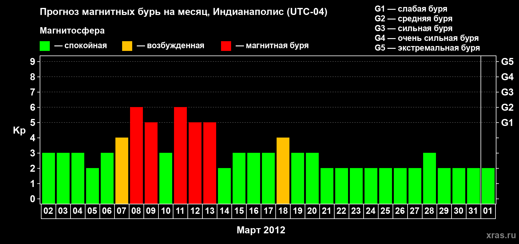 Прогноз магнитных бурь в Индианаполисе — 2 марта 2012 года