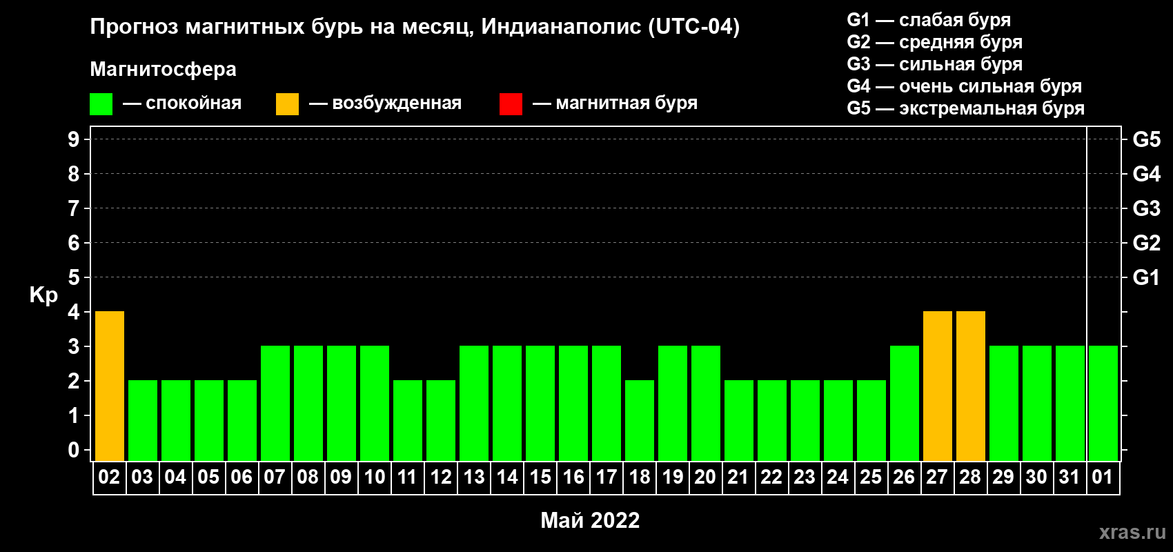 Прогноз магнитных бурь в Индианаполисе на 2 мая 2022 года