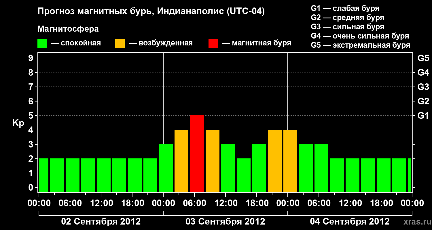 Прогноз магнитных бурь в Индианаполисе на 2 сентября 2012 года