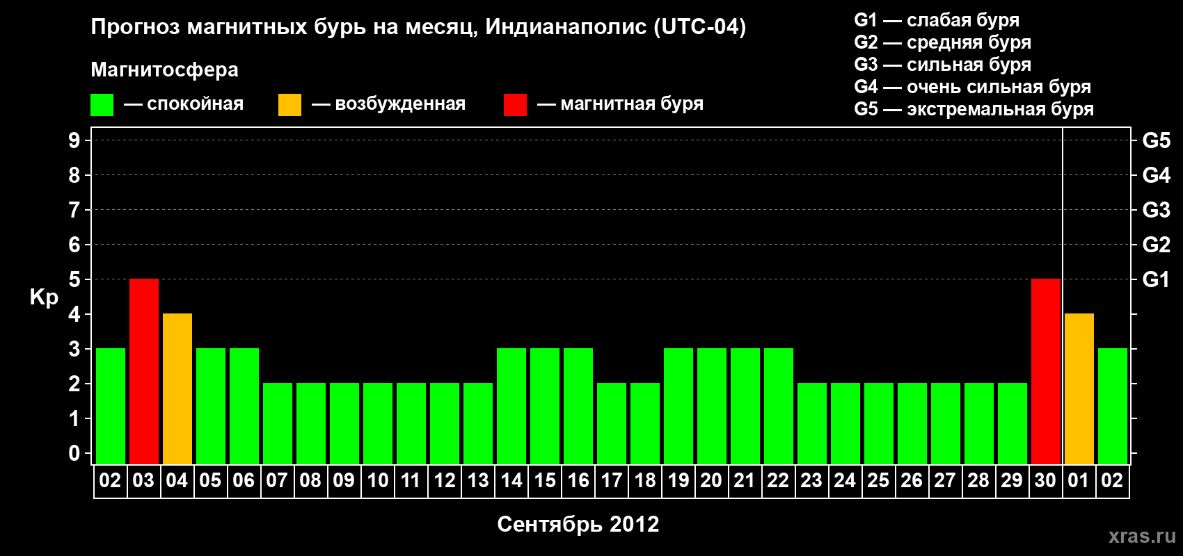 Прогноз магнитных бурь в Индианаполисе — 2 сентября 2012 года