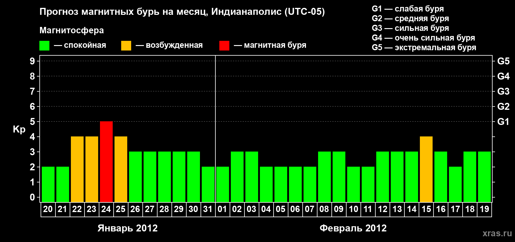 Прогноз магнитных бурь в Индианаполисе на 20 января 2012 года