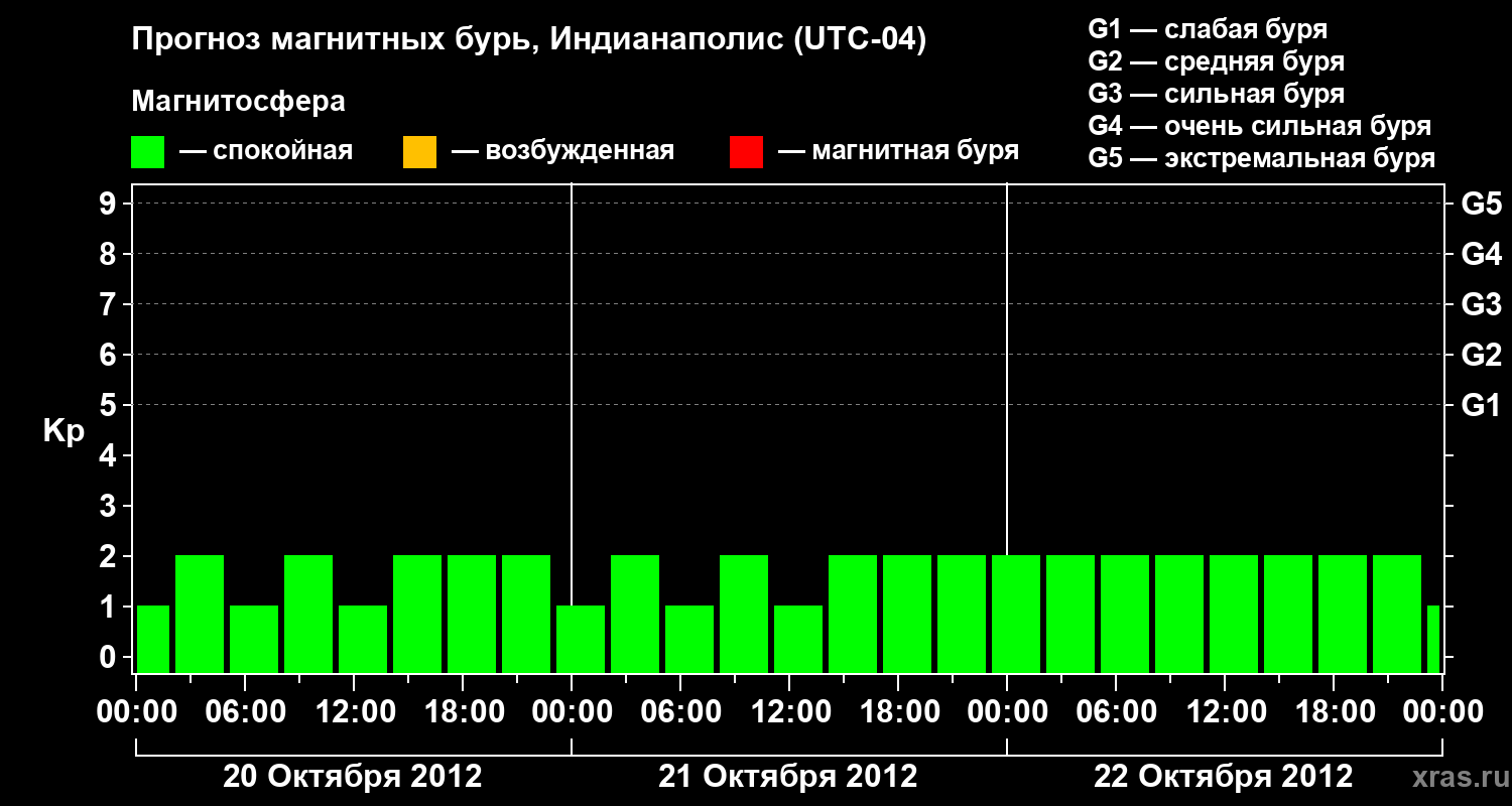 Прогноз магнитных бурь в Индианаполисе на 20 октября 2012 года