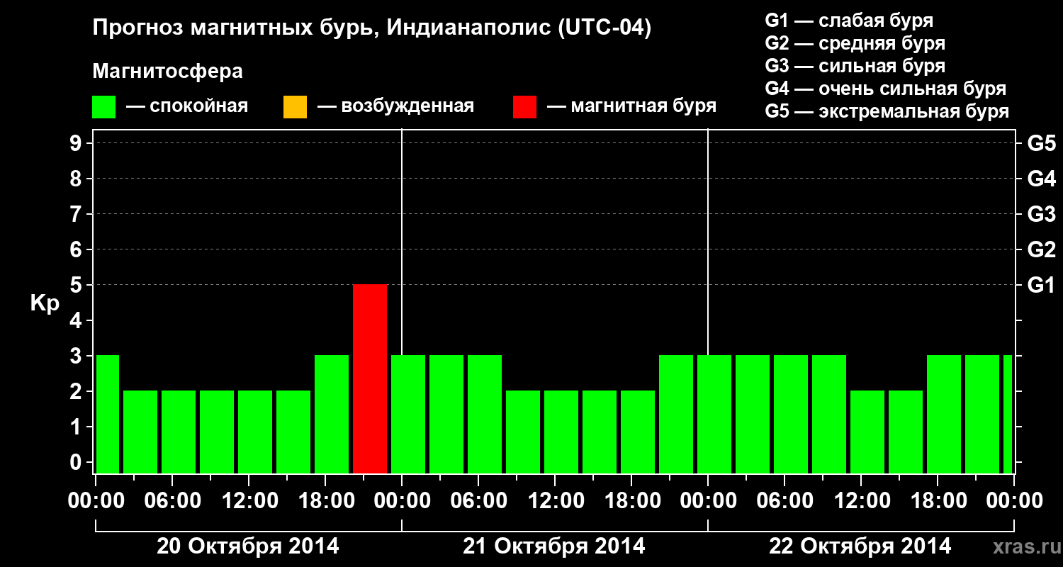 Прогноз магнитных бурь в Индианаполисе на 20 октября 2014 года