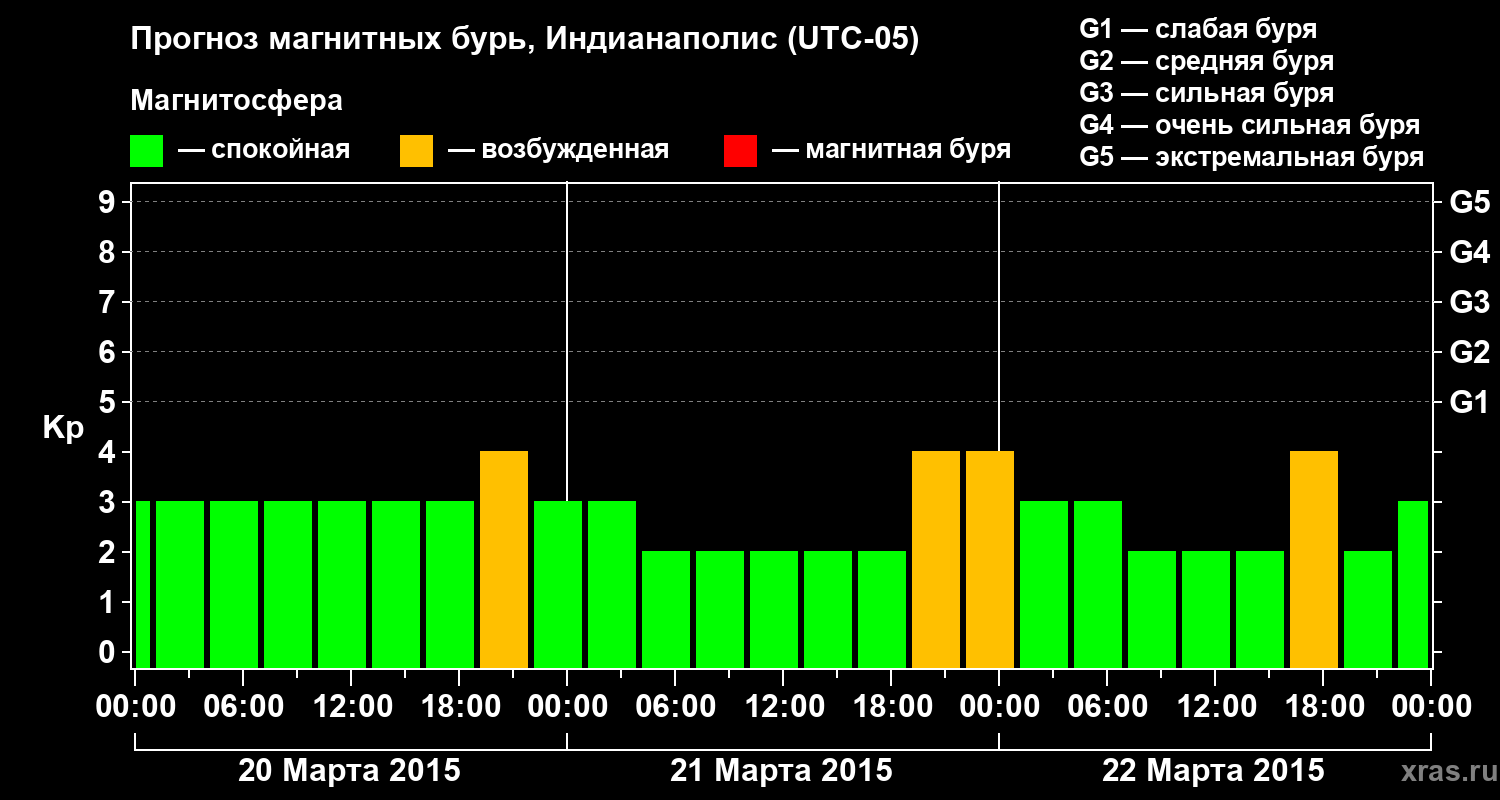 Прогноз магнитных бурь в Индианаполисе на 20 марта 2015 года
