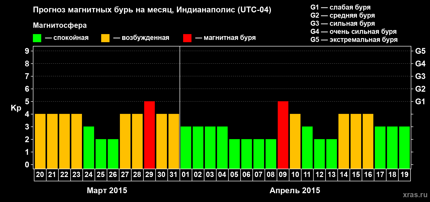 Прогноз магнитных бурь в Индианаполисе — 20 марта 2015 года