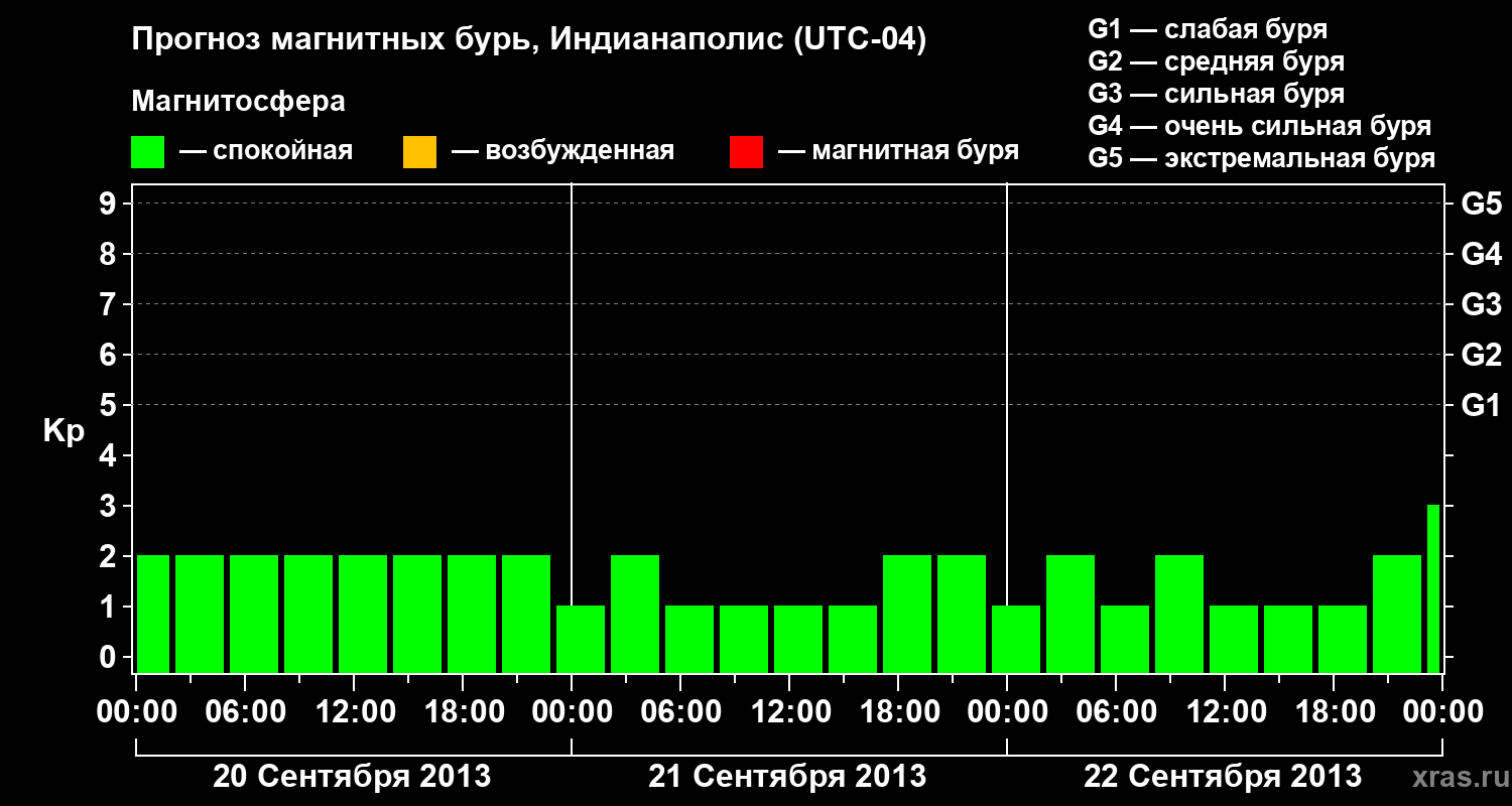 Прогноз магнитных бурь в Индианаполисе — 20 сентября 2013 года