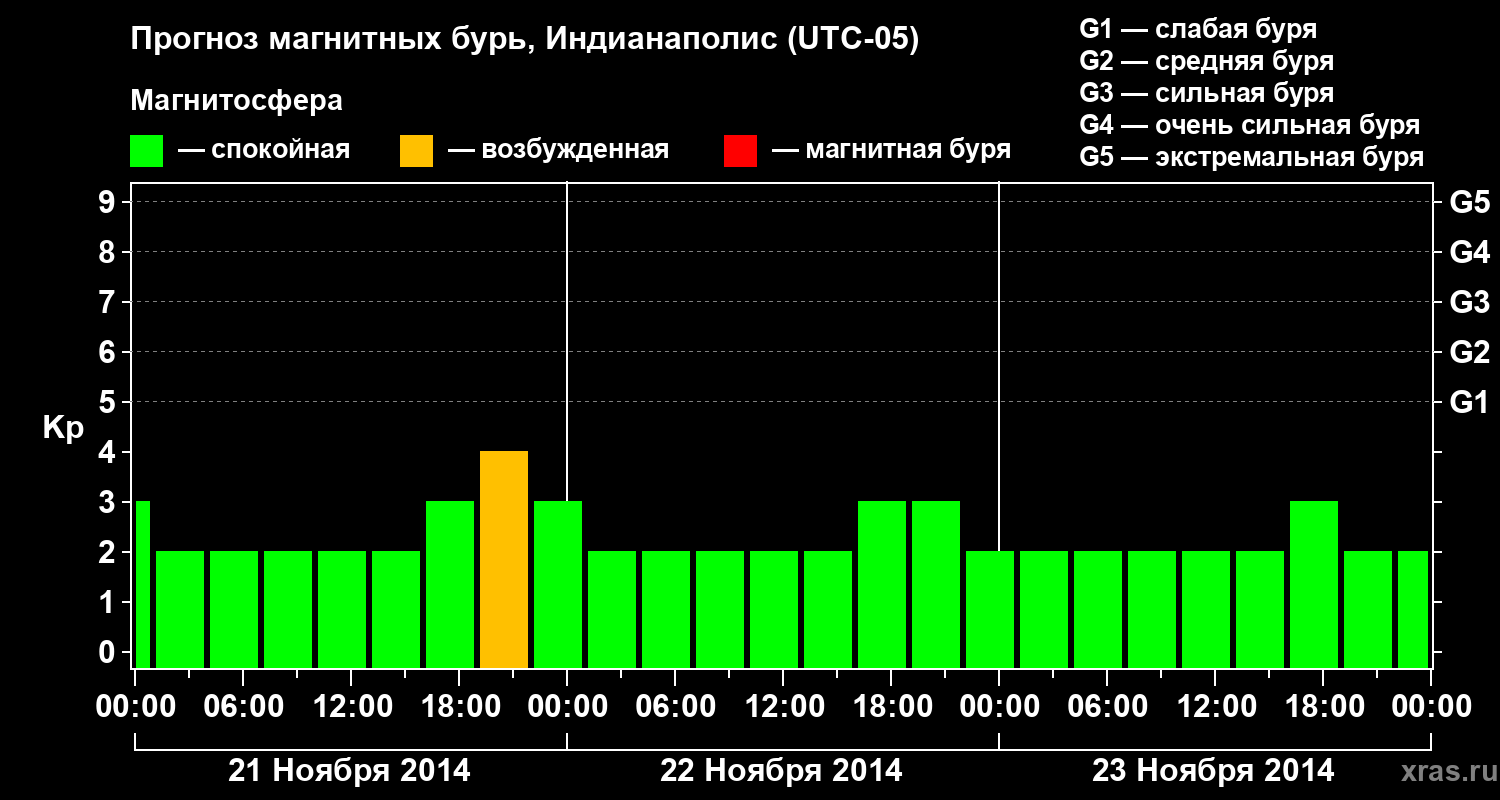 Прогноз магнитных бурь в Индианаполисе — 21 ноября 2014 года