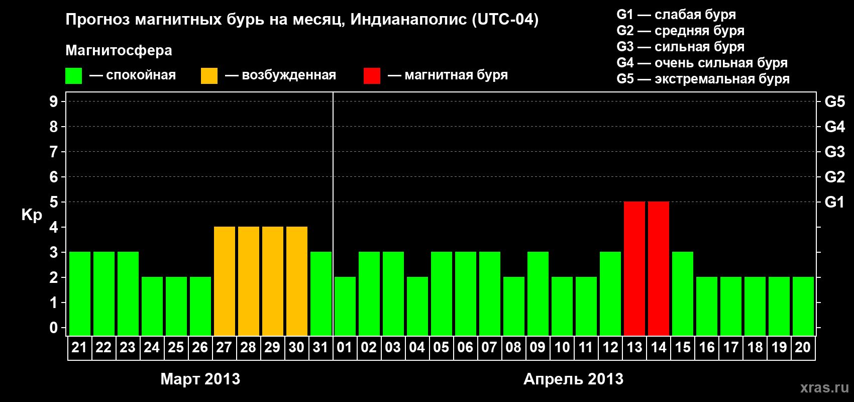 Прогноз магнитных бурь в Индианаполисе на 21 марта 2013 года