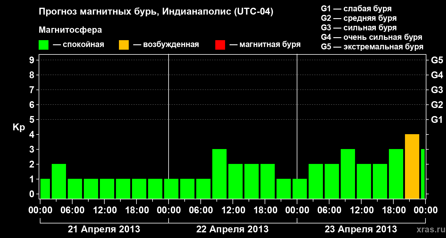 Прогноз магнитных бурь в Индианаполисе — 21 апреля 2013 года