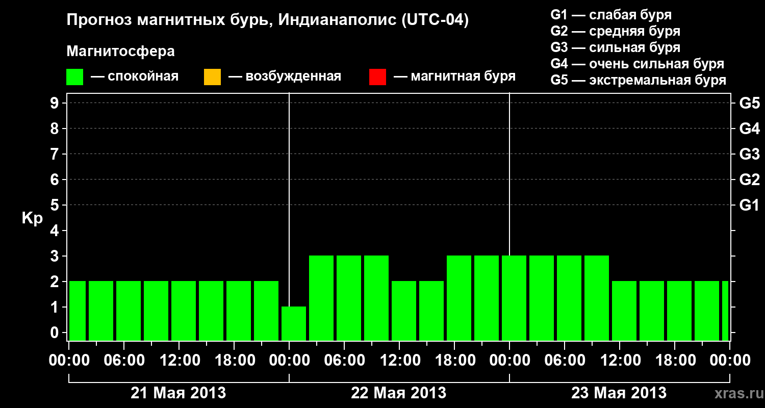 Прогноз магнитных бурь в Индианаполисе на 21 мая 2013 года