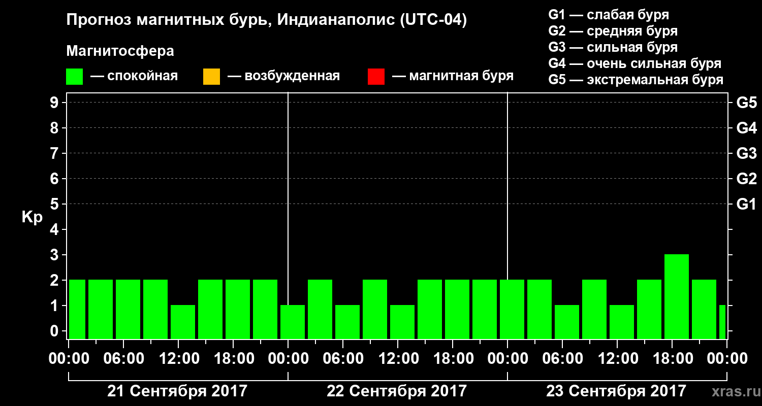 Прогноз магнитных бурь в Индианаполисе на 21 сентября 2017 года
