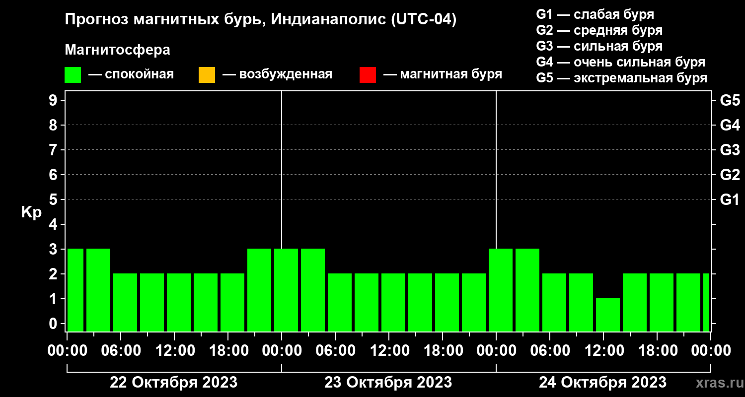 Прогноз магнитных бурь в Индианаполисе на 22 октября 2023 года