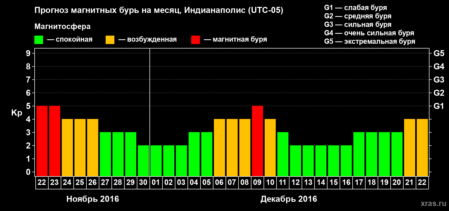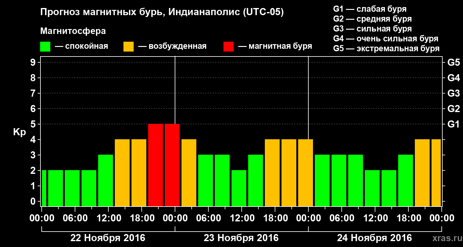 Прогноз магнитных бурь в Индианаполисе — 22 ноября 2016 года