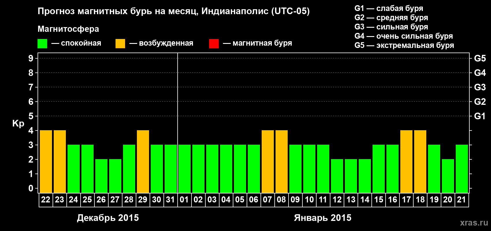 Прогноз магнитных бурь в Индианаполисе — 22 декабря 2014 года