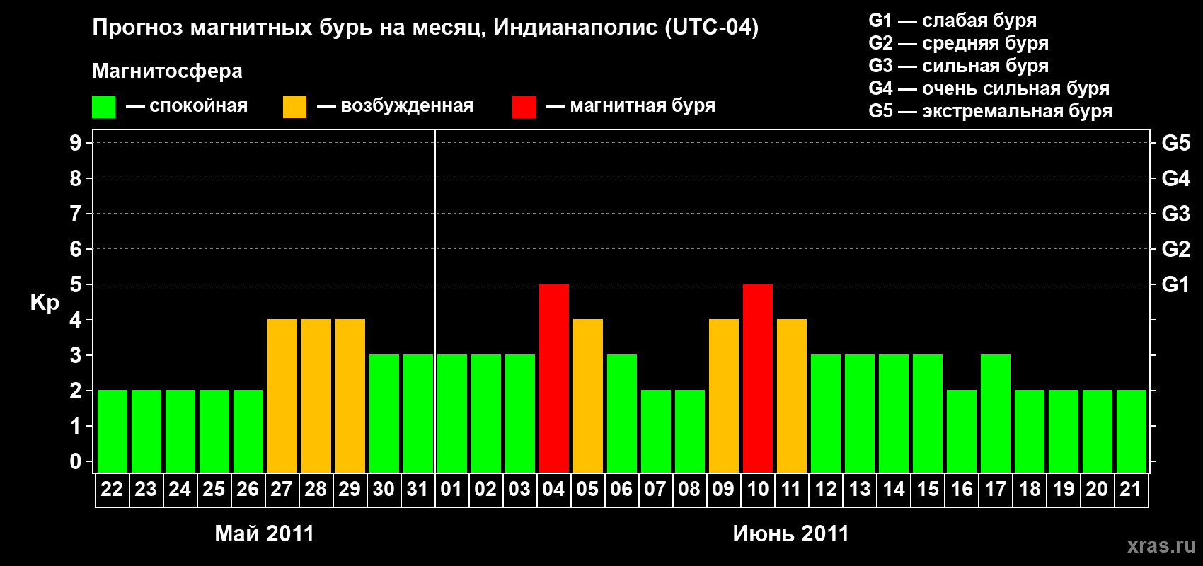 Прогноз магнитных бурь в Индианаполисе на 22 мая 2011 года