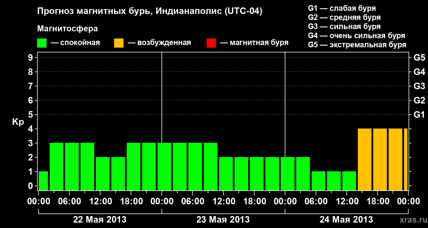 Прогноз магнитных бурь в Индианаполисе на 22 мая 2013 года