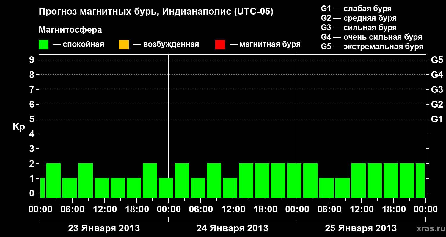 Прогноз магнитных бурь в Индианаполисе — 23 января 2013 года