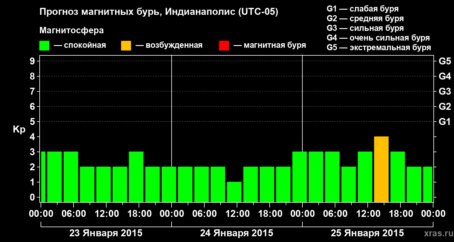 Прогноз магнитных бурь в Индианаполисе на 23 января 2015 года