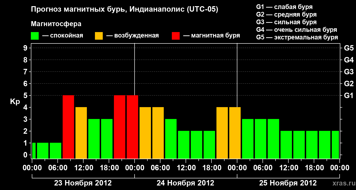 Прогноз магнитных бурь в Индианаполисе — 23 ноября 2012 года
