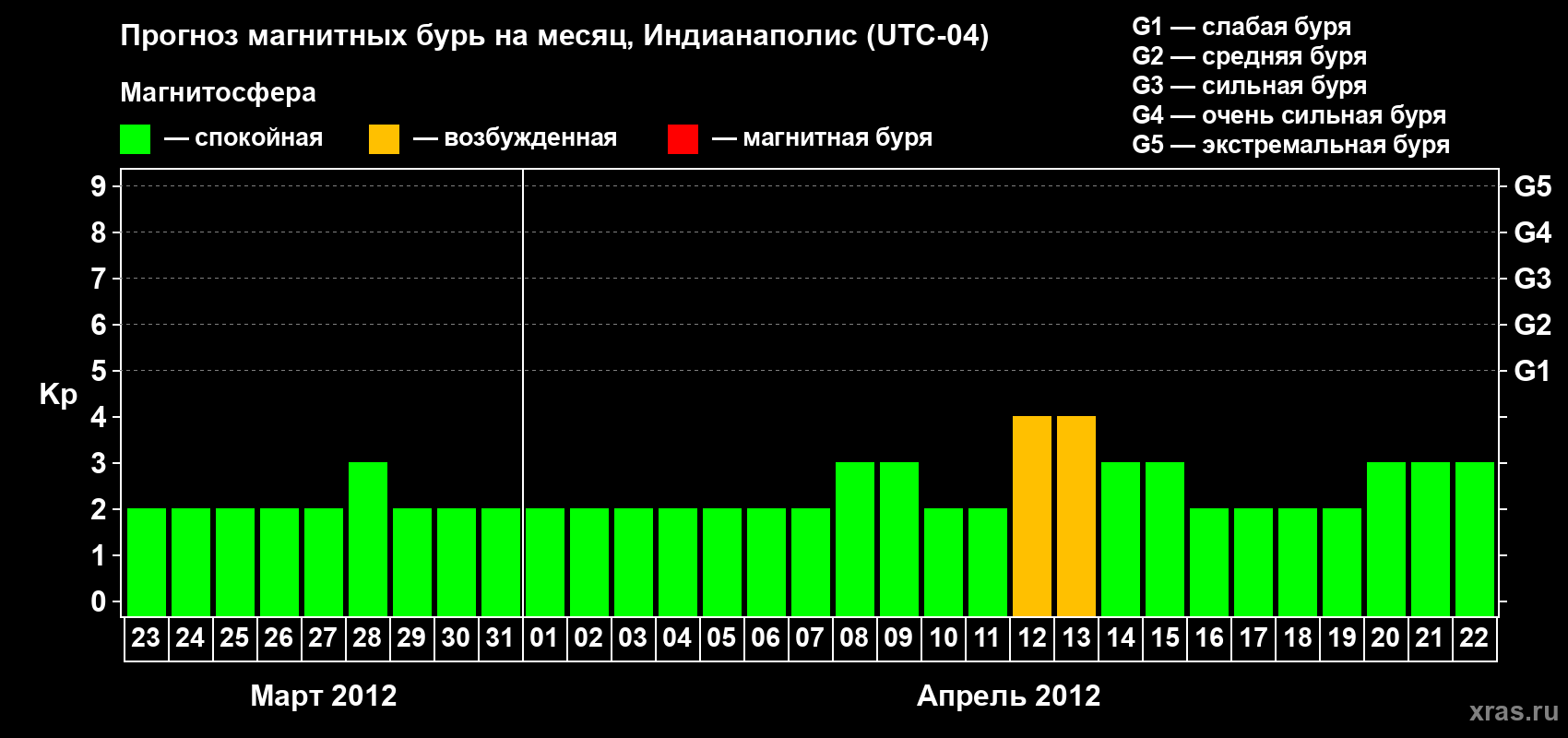 Прогноз магнитных бурь в Индианаполисе — 23 марта 2012 года