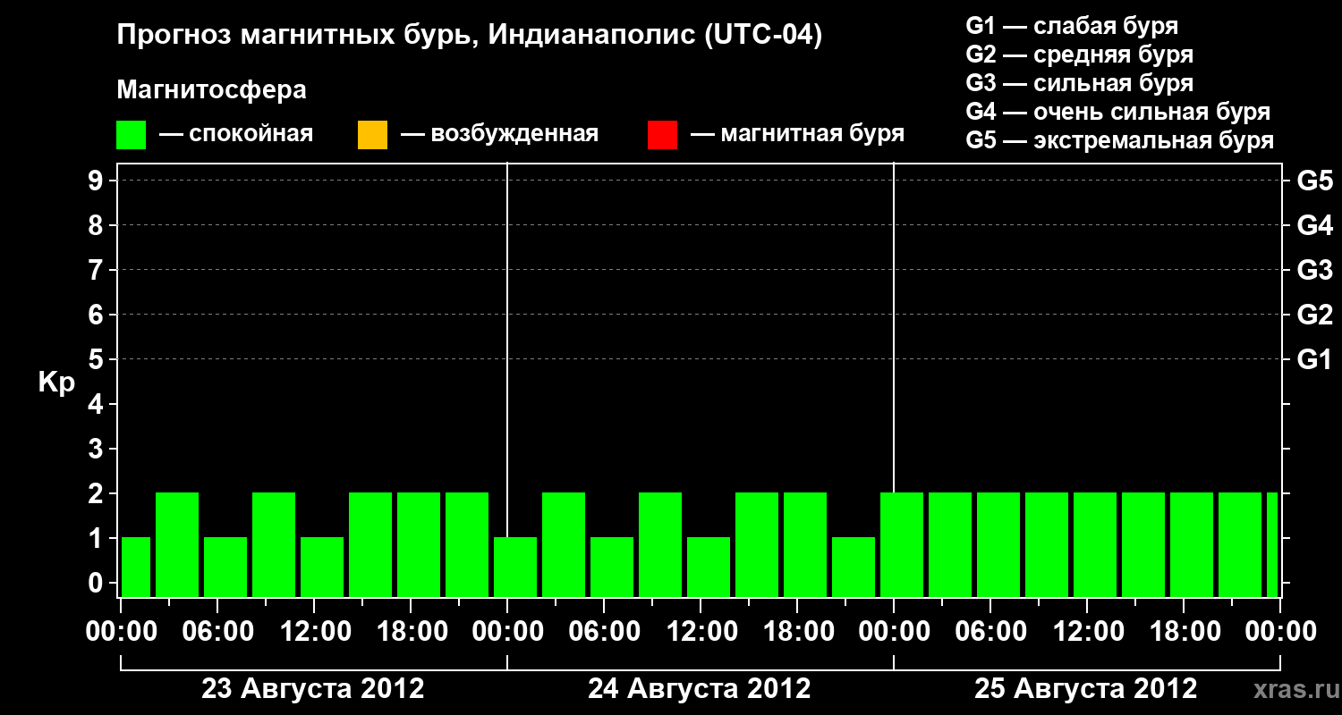Прогноз магнитных бурь в Индианаполисе на 23 августа 2012 года