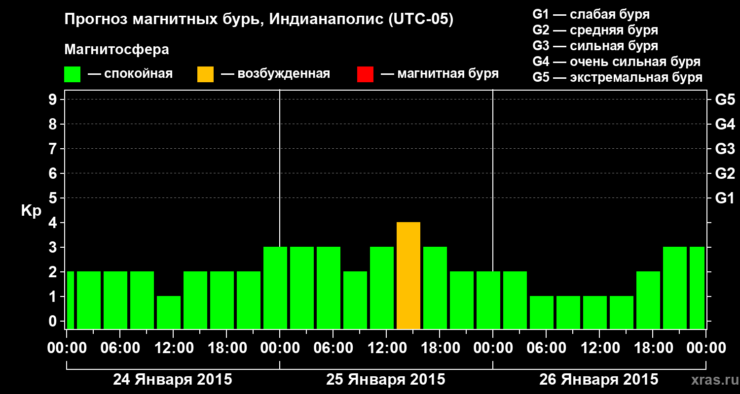 Прогноз магнитных бурь в Индианаполисе — 24 января 2015 года