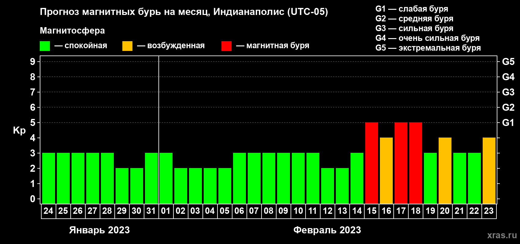 Прогноз магнитных бурь в Индианаполисе — 24 января 2023 года
