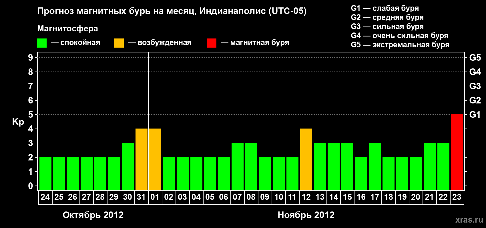 Прогноз магнитных бурь в Индианаполисе — 24 октября 2012 года