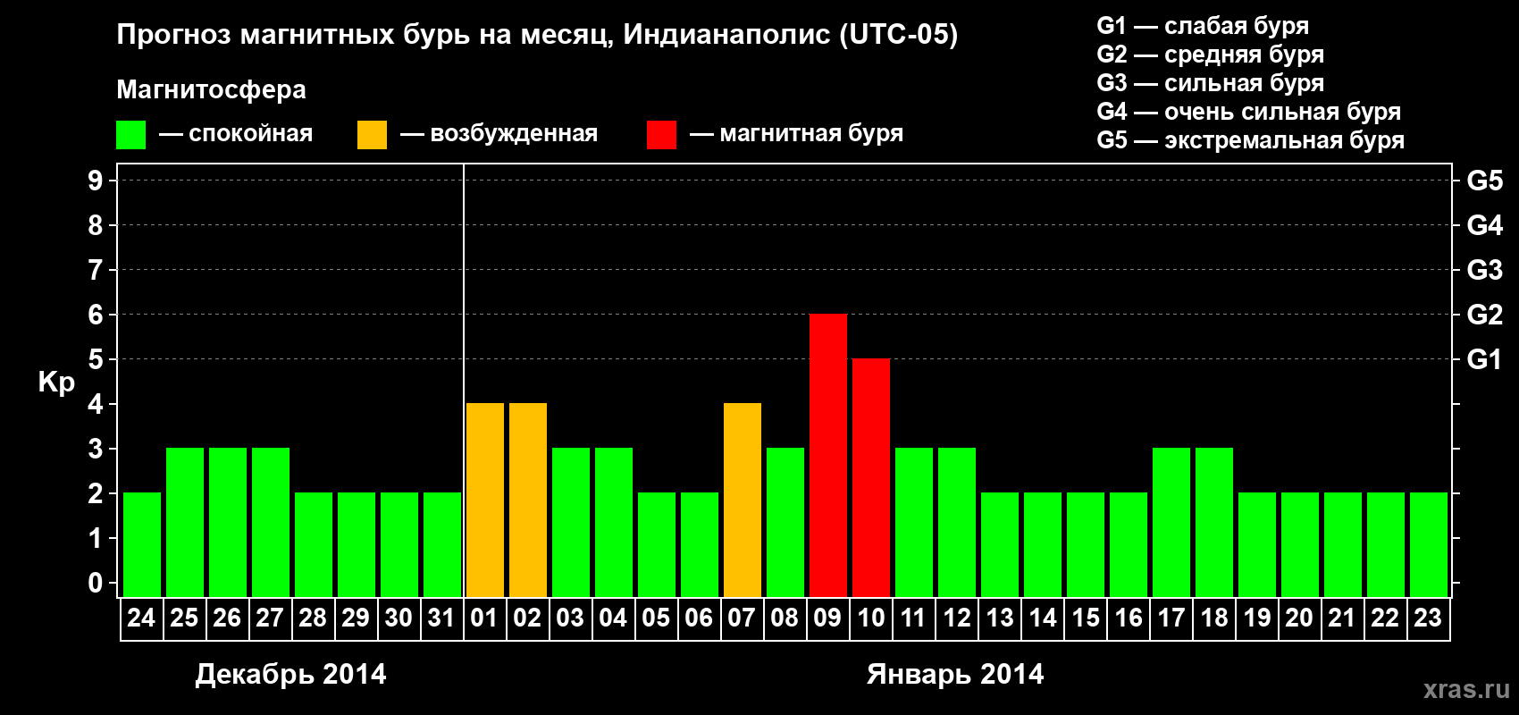 Прогноз магнитных бурь в Индианаполисе на 24 декабря 2013 года