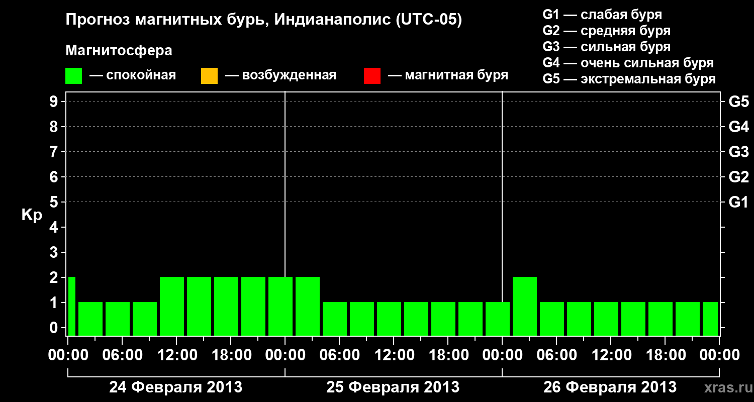 Прогноз магнитных бурь в Индианаполисе на 24 февраля 2013 года