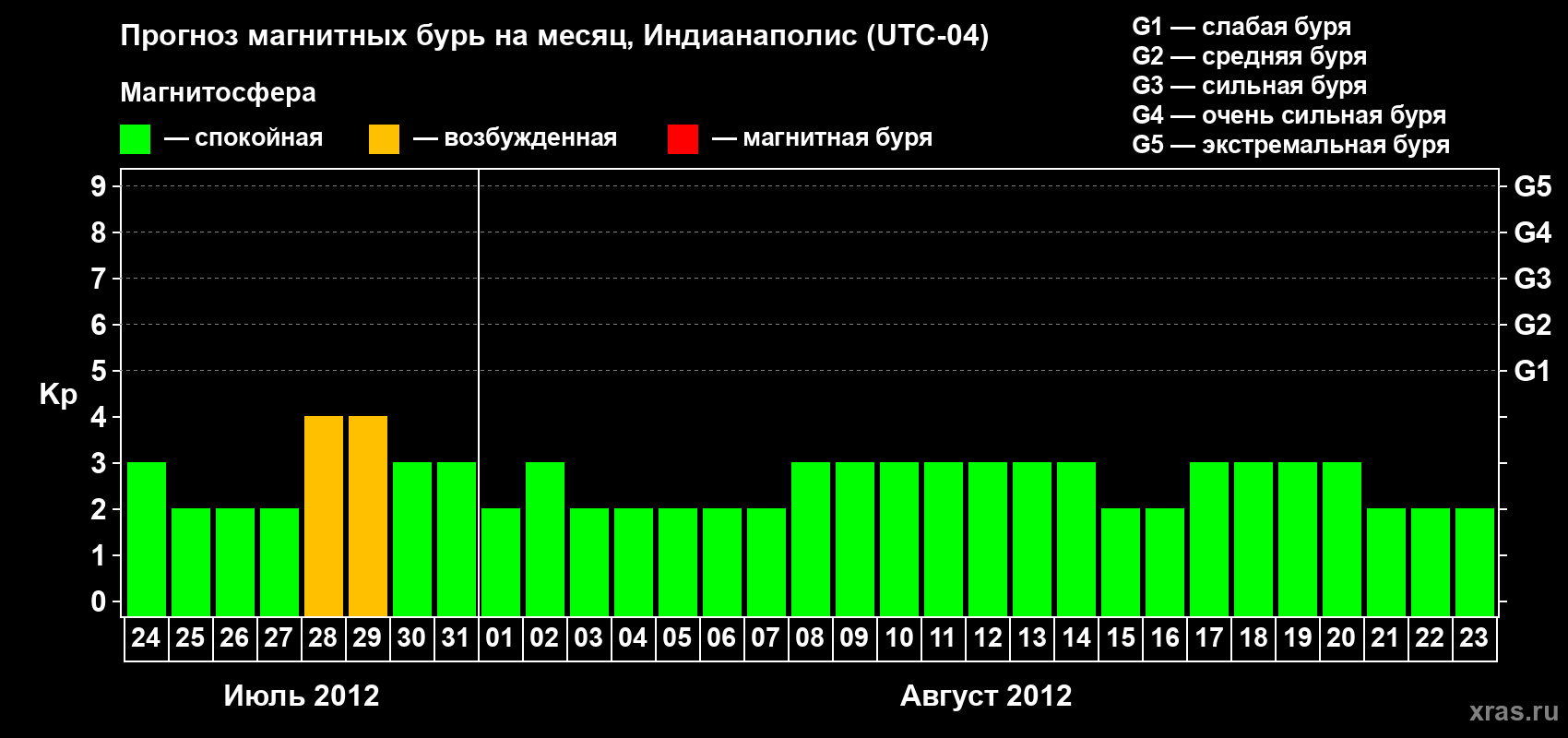 Прогноз магнитных бурь в Индианаполисе — 24 июля 2012 года