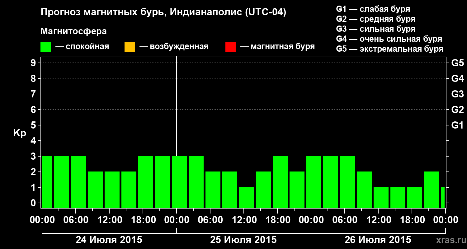 Прогноз магнитных бурь в Индианаполисе на 24 июля 2015 года