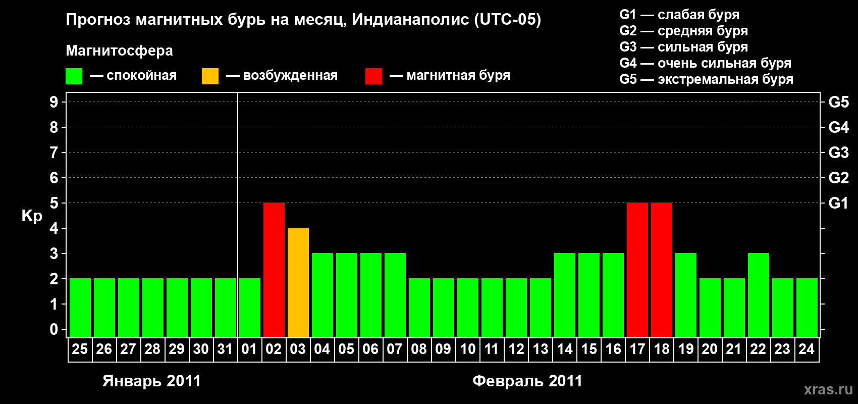 Прогноз магнитных бурь в Индианаполисе — 25 января 2011 года