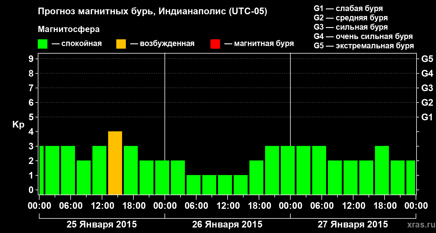 Прогноз магнитных бурь в Индианаполисе — 25 января 2015 года