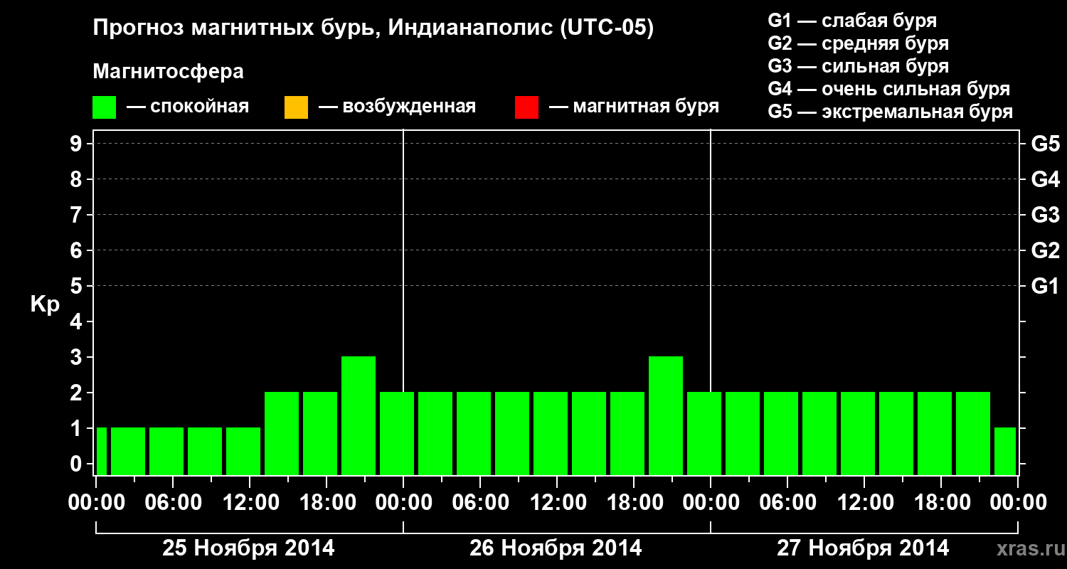 Прогноз магнитных бурь в Индианаполисе — 25 ноября 2014 года